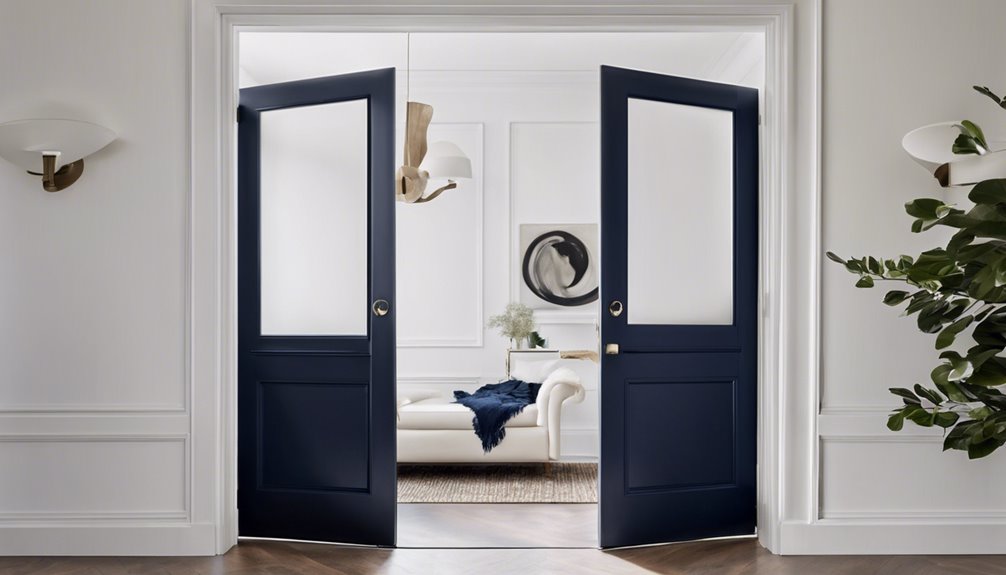 Wykorzystując teorię kontrastu kolorów, możesz maksymalizować wpływ ciemnych drzwi na jasnym tle. Ta technika podkreśla różnice między kolorami, sprawiając, że ciemne odcienie jeszcze bardziej się wyróżniają. Zaprasza do ciekawości i przyciąga uwagę, przekształcając twoje wejście w punkt centralny.