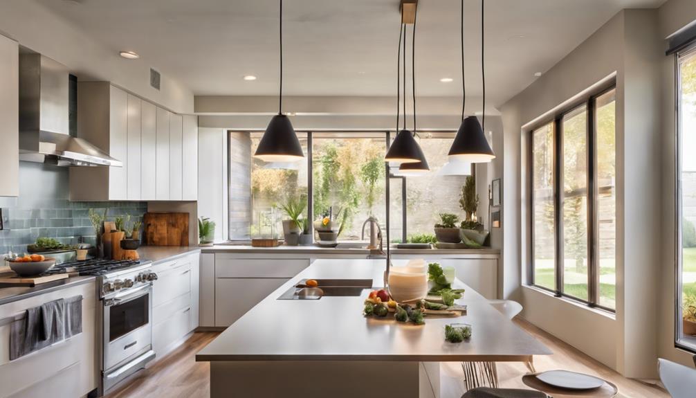 Odkryjesz, że konkretne projekty oświetleniowe mogą naprawdę podnieść estetykę twojej kuchni. Połącz oświetlenie robocze dla funkcjonalności z oświetleniem ogólnym dla ciepła, tworząc zrównoważoną atmosferę, która podkreśla zarówno styl, jak i użyteczność w twojej przestrzeni.