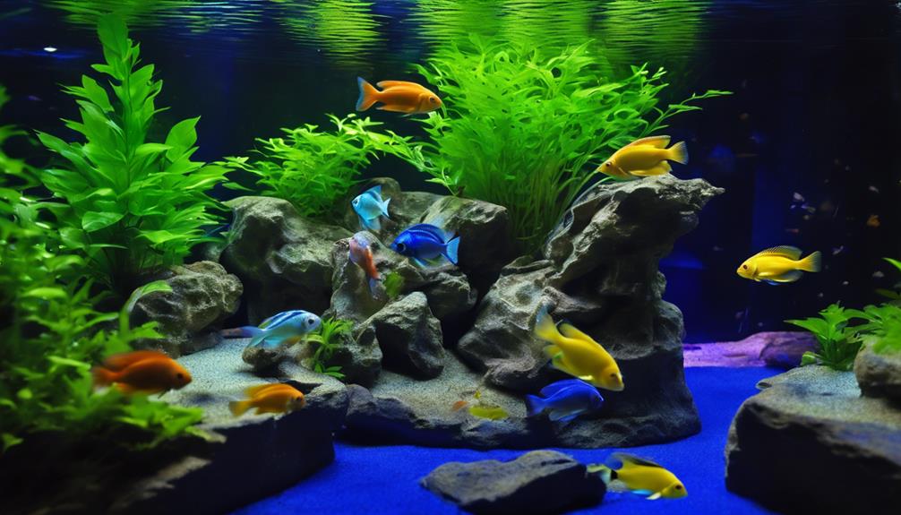 Możesz również rozważyć oświetlenie, które imituje naturalne warunki Jeziora Malawi, zapewniając mieszankę niebieskiego i białego światła. To nie tylko poprawia wygląd Twojego zbiornika, ale także sprzyja zdrowemu wzrostowi roślin, jeśli takie posiadasz.