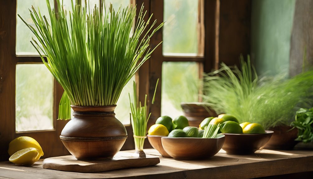 W ogrodzie twojej kuchni, trawa cytrynowa stoi wysoka jak mądry starzec, oferując nieprzebrane smaki i korzyści. Jej żywe łodygi nie tylko wzbogacają twoje potrawy, ale także odstraszają szkodniki, tworząc harmonijną równowagę. Przyjmując trawę cytrynową, uprawiasz bogaty gobelin smaku i zdrowia. Tak jak drzewo rodzi owoce, twoje kulinarną przygody będą kwitnąć, gdy pielęgnujesz ten wszechstronny zioło. Więc zasiej go w swoich przepisach i obserwuj, jak twoje posiłki rozkwitają w coś niezwykłego.